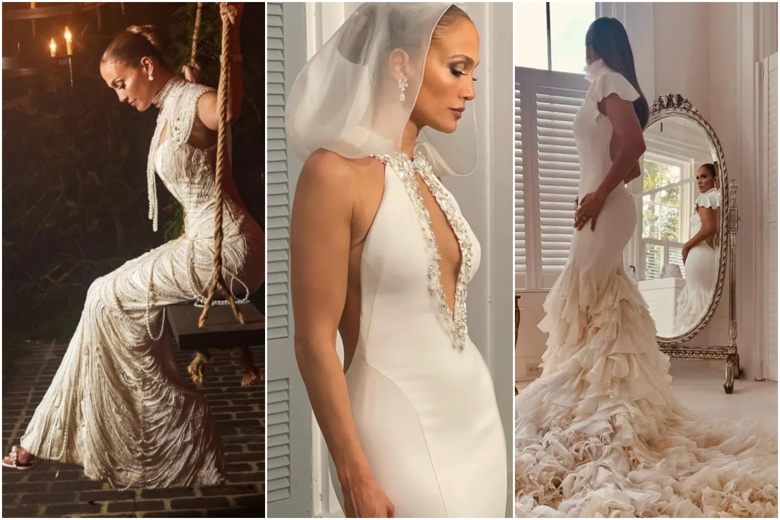 LOS ANGELES - Actress-singer Jennifer Lopez, who married actor Ben Affleck in a lavish estate ceremony last Saturday (Aug 20), has shared photos of the three gowns she picked for the occasion.