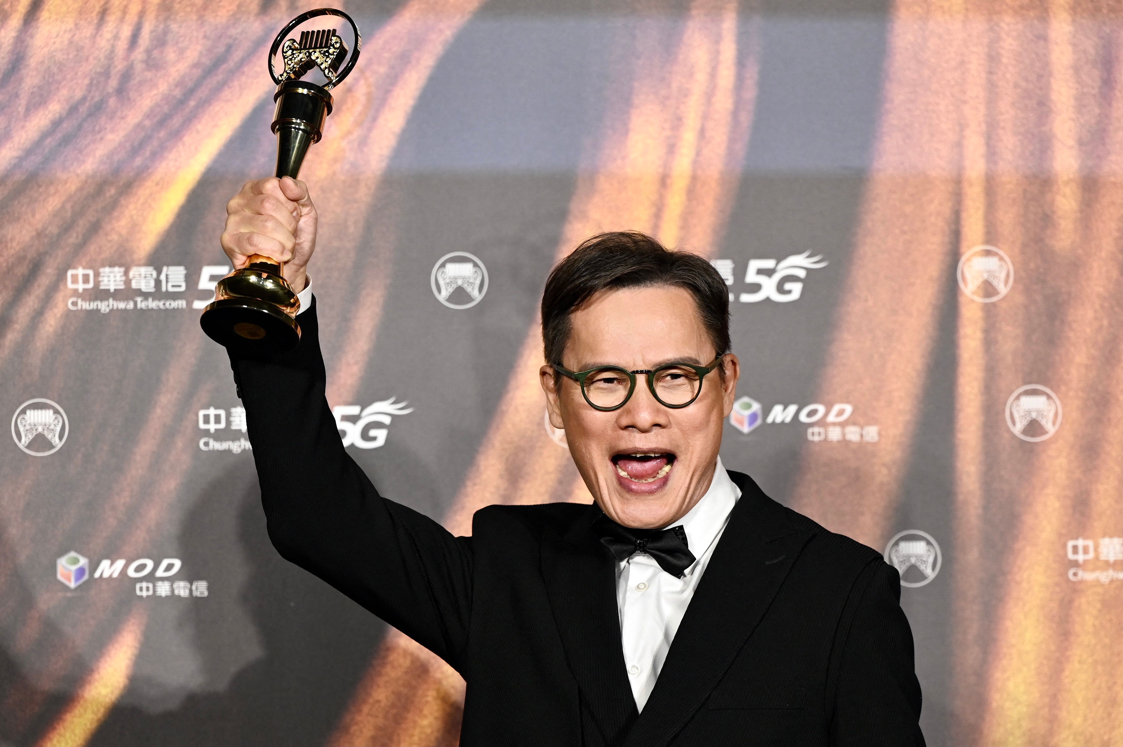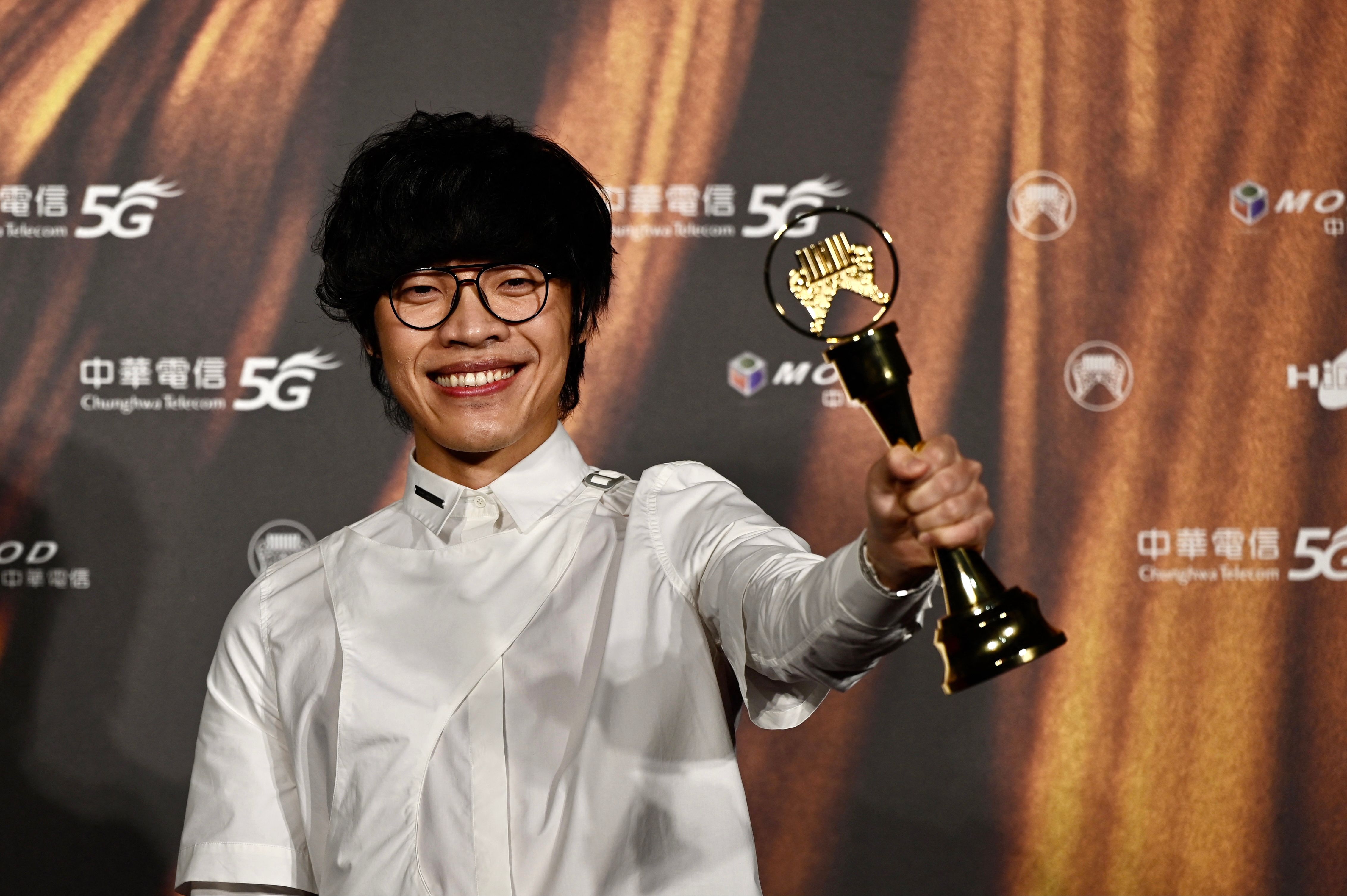 Taiwanese singer Crowd Lu poses for photographs after winning the Song of the Year Award.