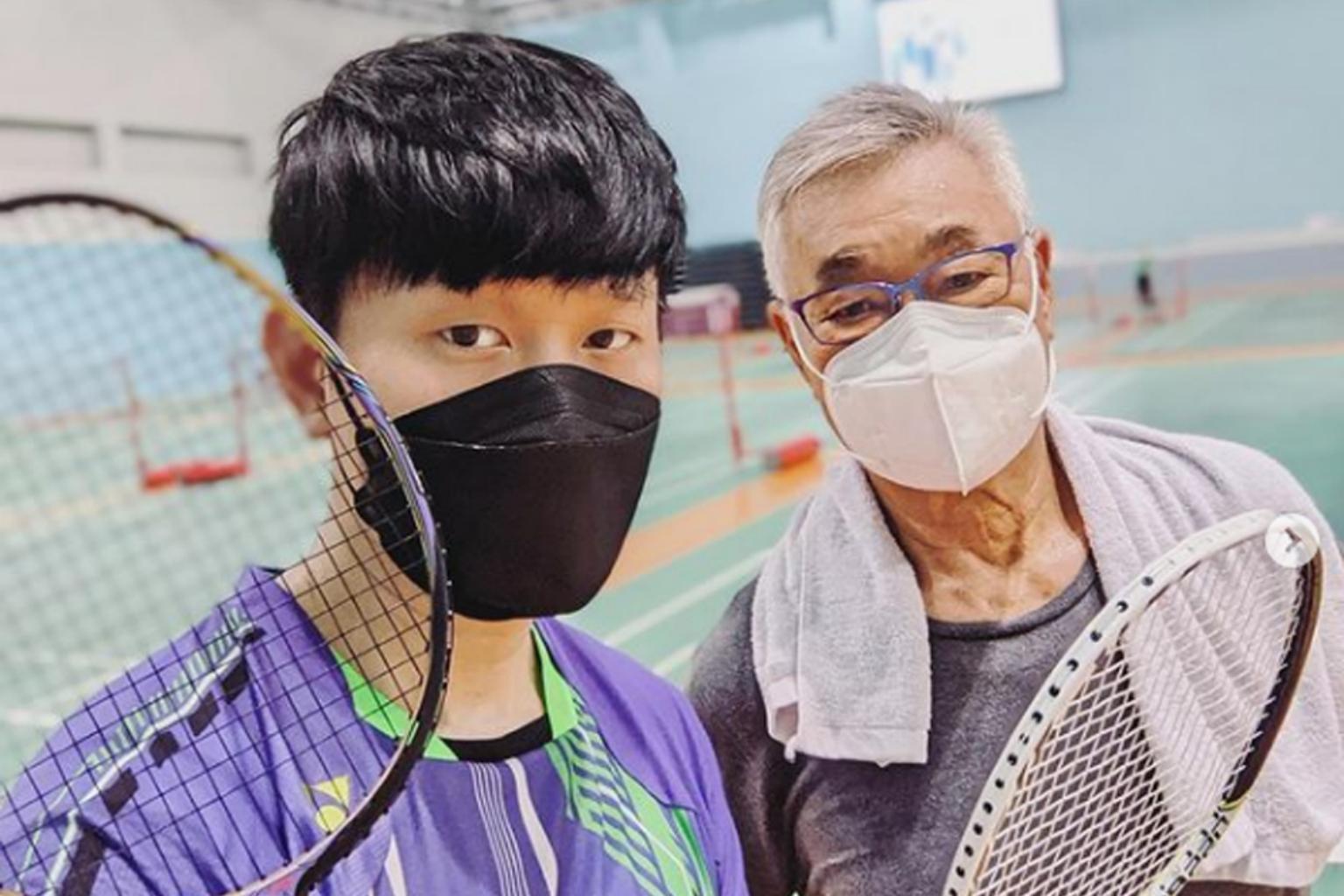Singer JJ Lin posted a photo of himself with his father during a badminton session.