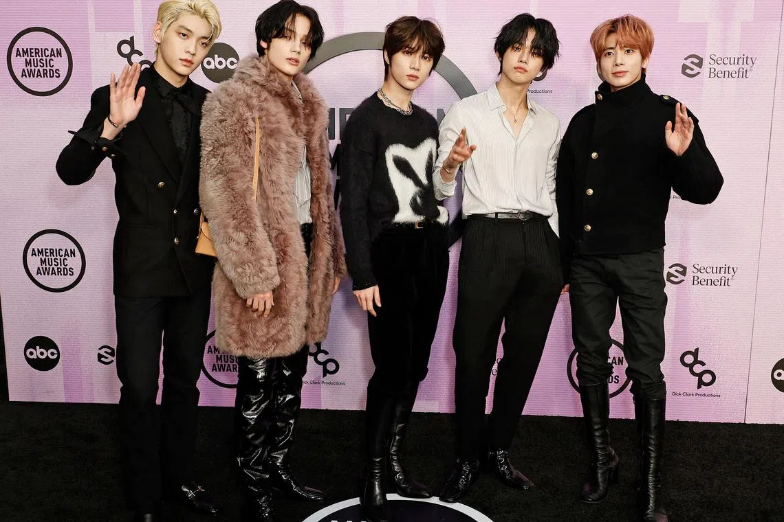 South Korean boy band Tomorrow X Together at the 2022 American Music Awards on Nov 20 last year in Los Angeles.