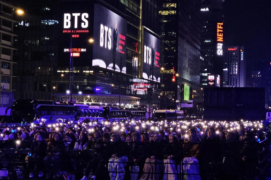 Beyond the city centre, fan activity areas have been spread across Seoul as part of a citywide branding campaign for Arirang, with media projections, light displays and drone shows illuminating popular landmarks such as the N Seoul Tower, Sungnyemun Gate and Han River.