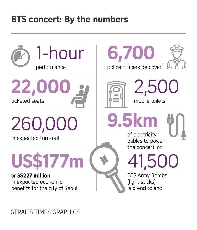 Ahead of the concert, a spokesperson for Four Seasons Hotel Seoul, which is located next to the concert zone, told The Straits Times that it was restricting access to the building to only hotel guests and had increased its security personnel for the day.