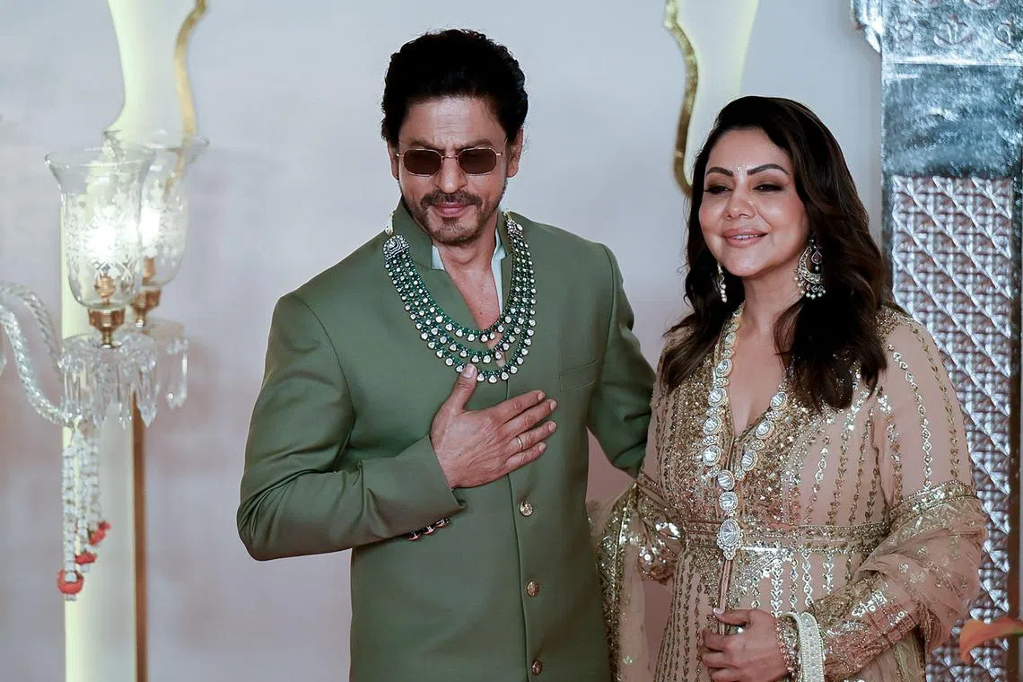 Bollywood actor Shah Rukh Khan and wife Gauri Khan arriving to attend the wedding ceremony.