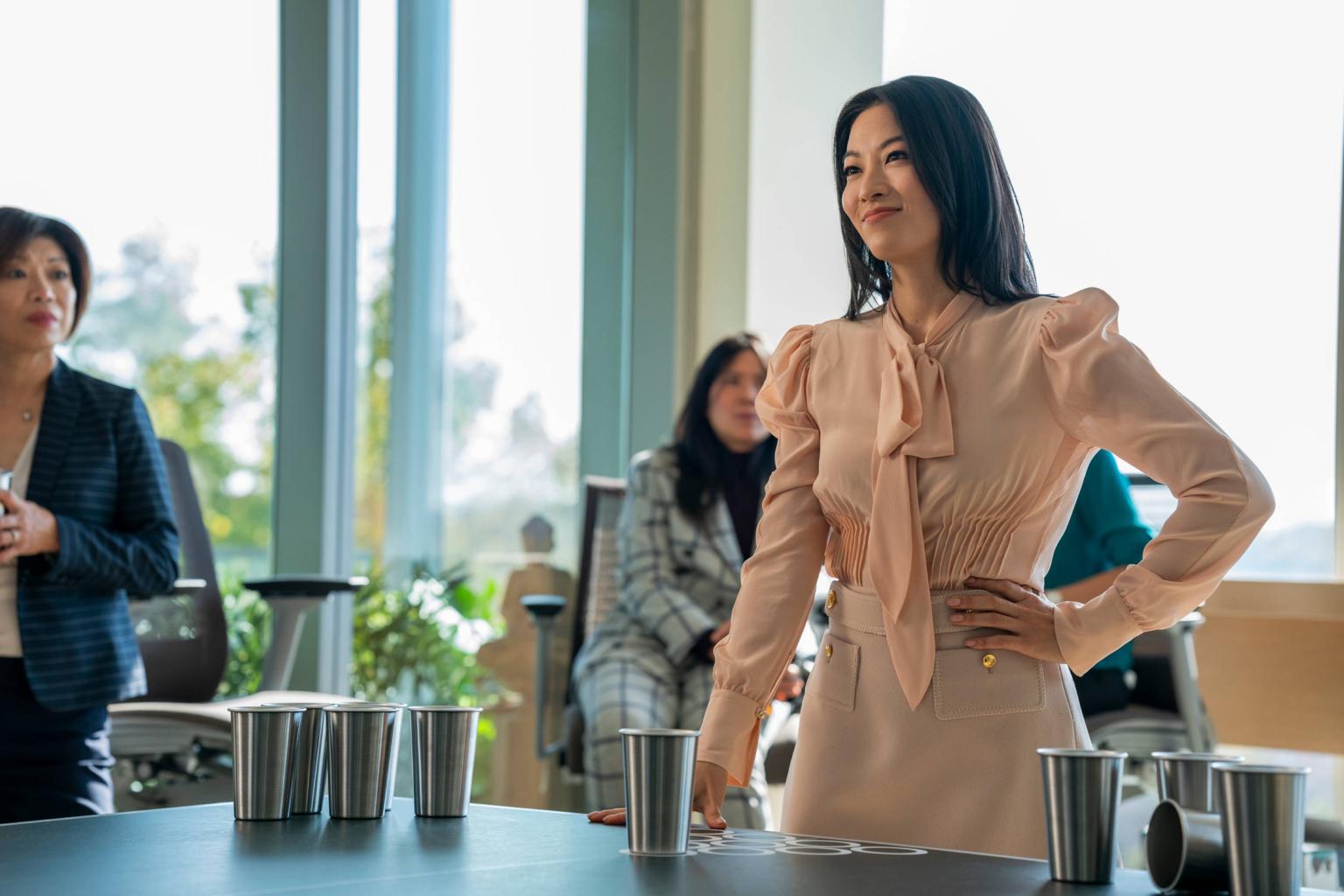 "Ingrid is on a big journey - she's been taught to hold her tongue and never rock the boat. Just work harder, don't complain. As an Asian woman, she's seen as the one who will be the last to leave the office. She does the work no one else wants to do," says Cho.
