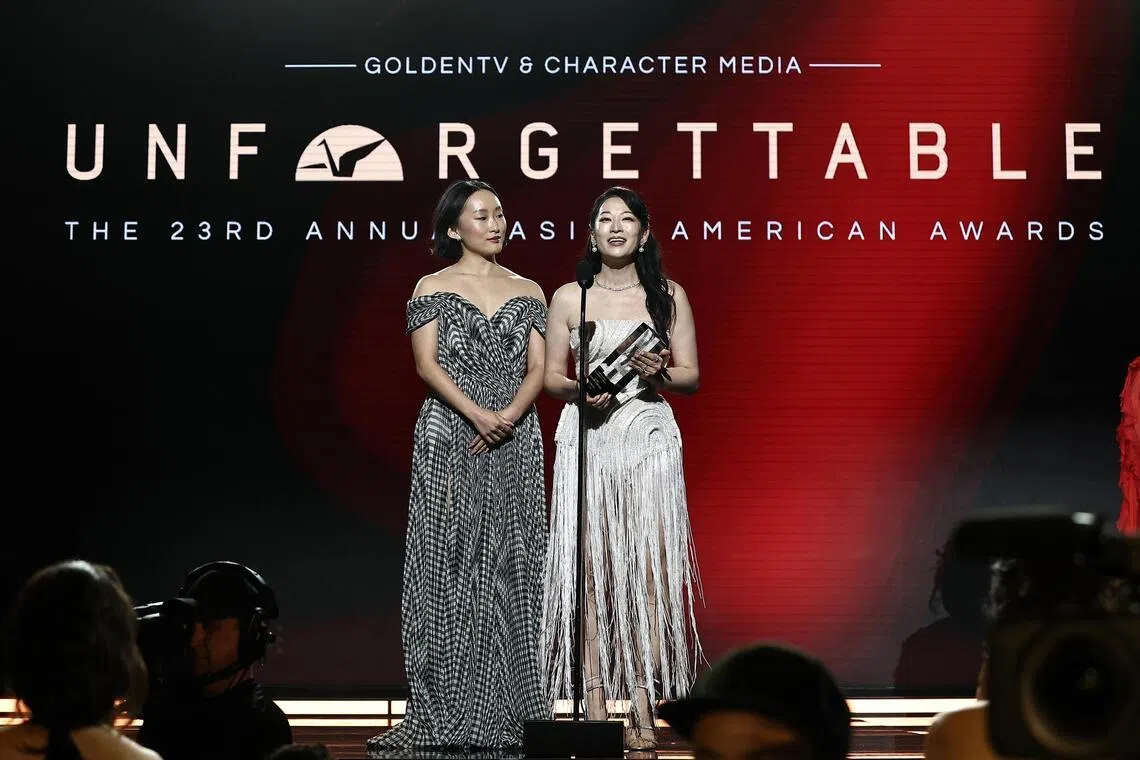 Ji-young Yoo (left) and Arden Cho accepted the Vanguard Award on behalf of KPop Demon Hunters at the Unforgettable Awards in Los Angeles on March 7.