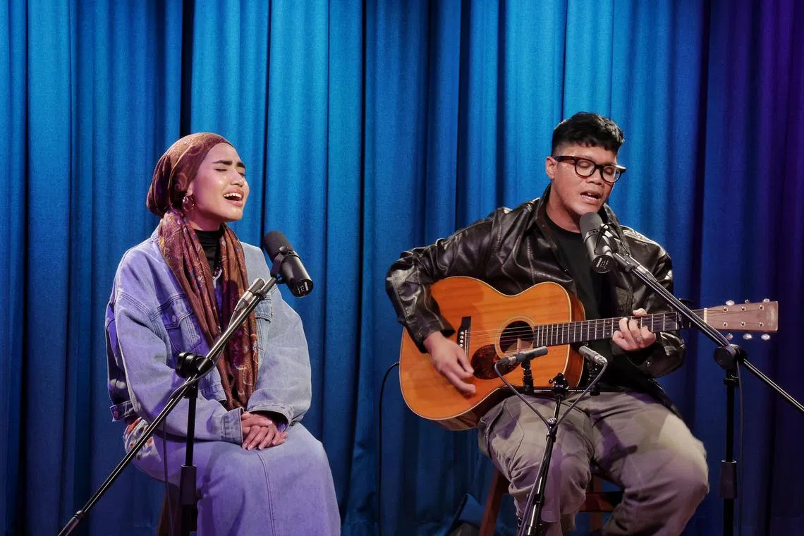 Shazza performing live with fellow Singaporean musician Umar Sirhan on ST’s Music Lab podcast.