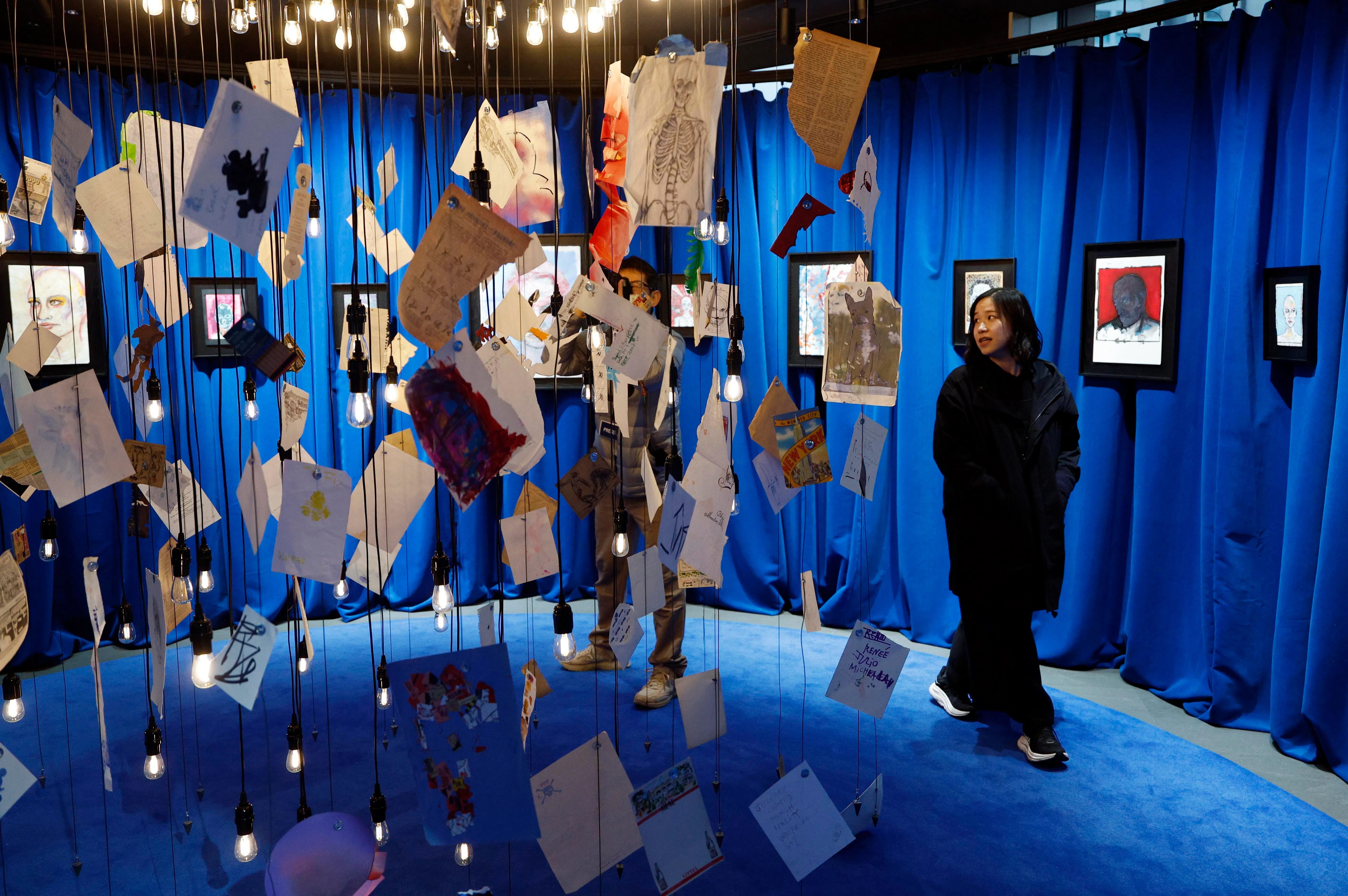 Visitor checking out Johnny Depp’s artworks on display in Tokyo, Japan, on Nov 27.