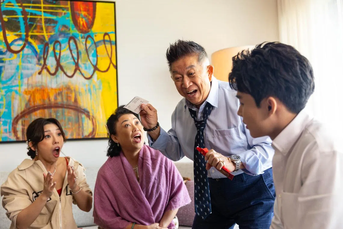 Henry Thia and Xiang Yun (second from left) play a married couple in Money No Enough 3.