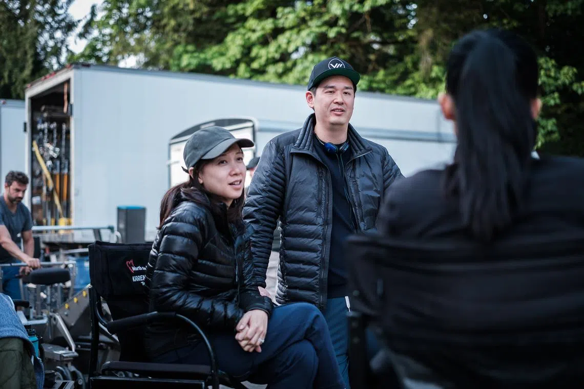 Taiwanese-Canadian actress Karena Lam (left) on the set of new movie Worth The Wait with film producer Rachel Tan.