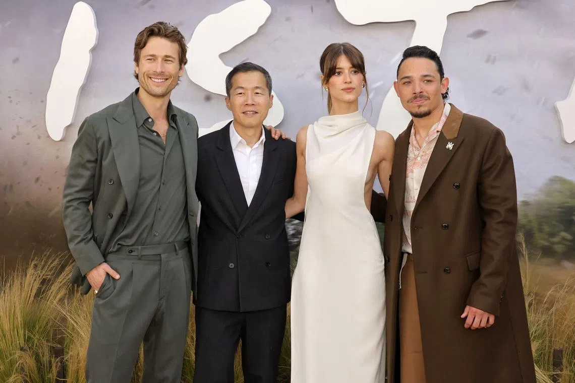 Twisters director Lee Isaac Chung (second from left) with cast members (from left) Glen Powell, Daisy Edgar-Jones and Anthony Ramos at the film’s premiere in Los Angeles on July 11.