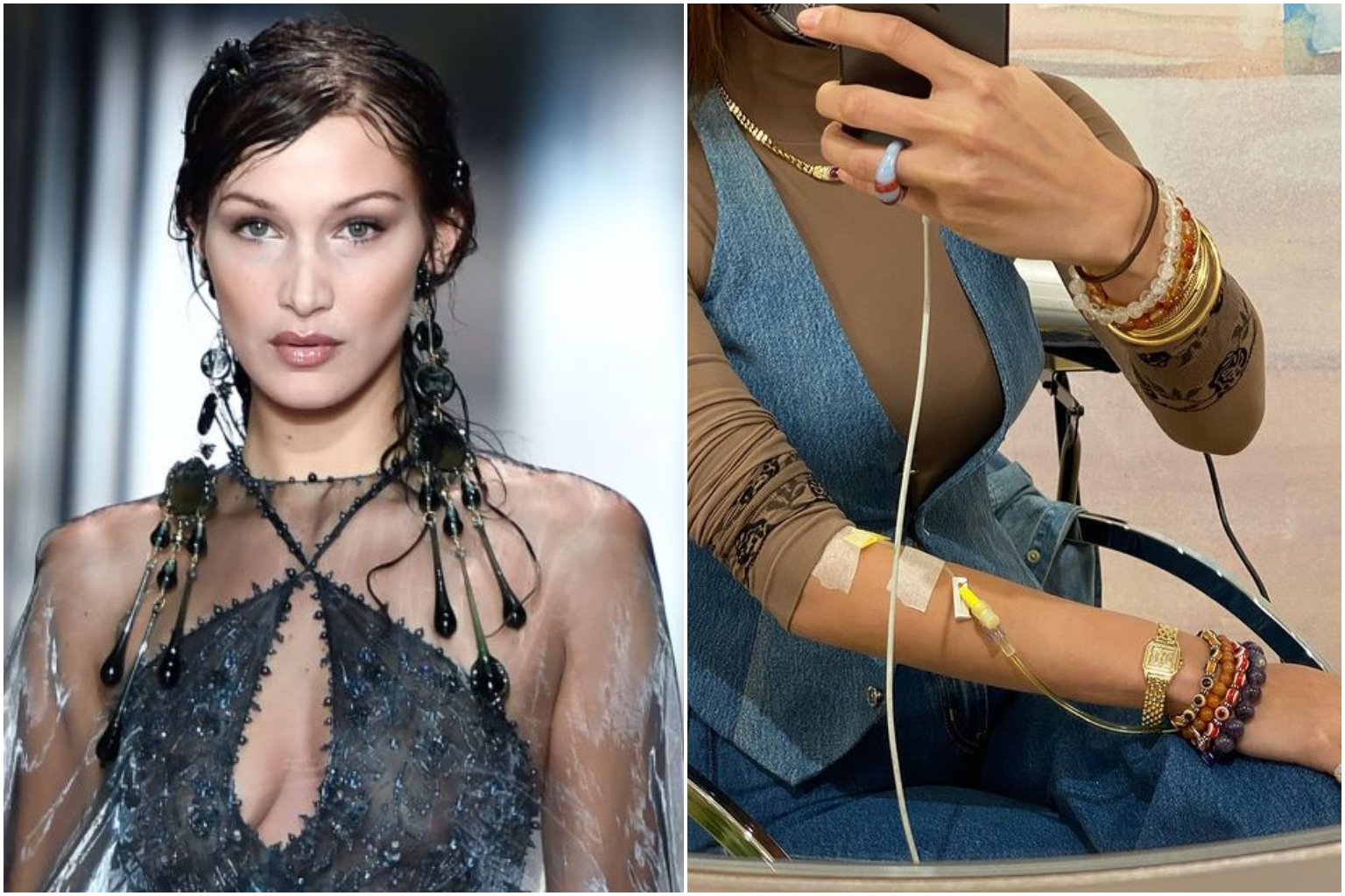 Top model Bella Hadid, 24, who revealed in 2016 that she suffers from Lyme disease, shared rare behind-the-scenes photos of her hooked up to an IV drop.