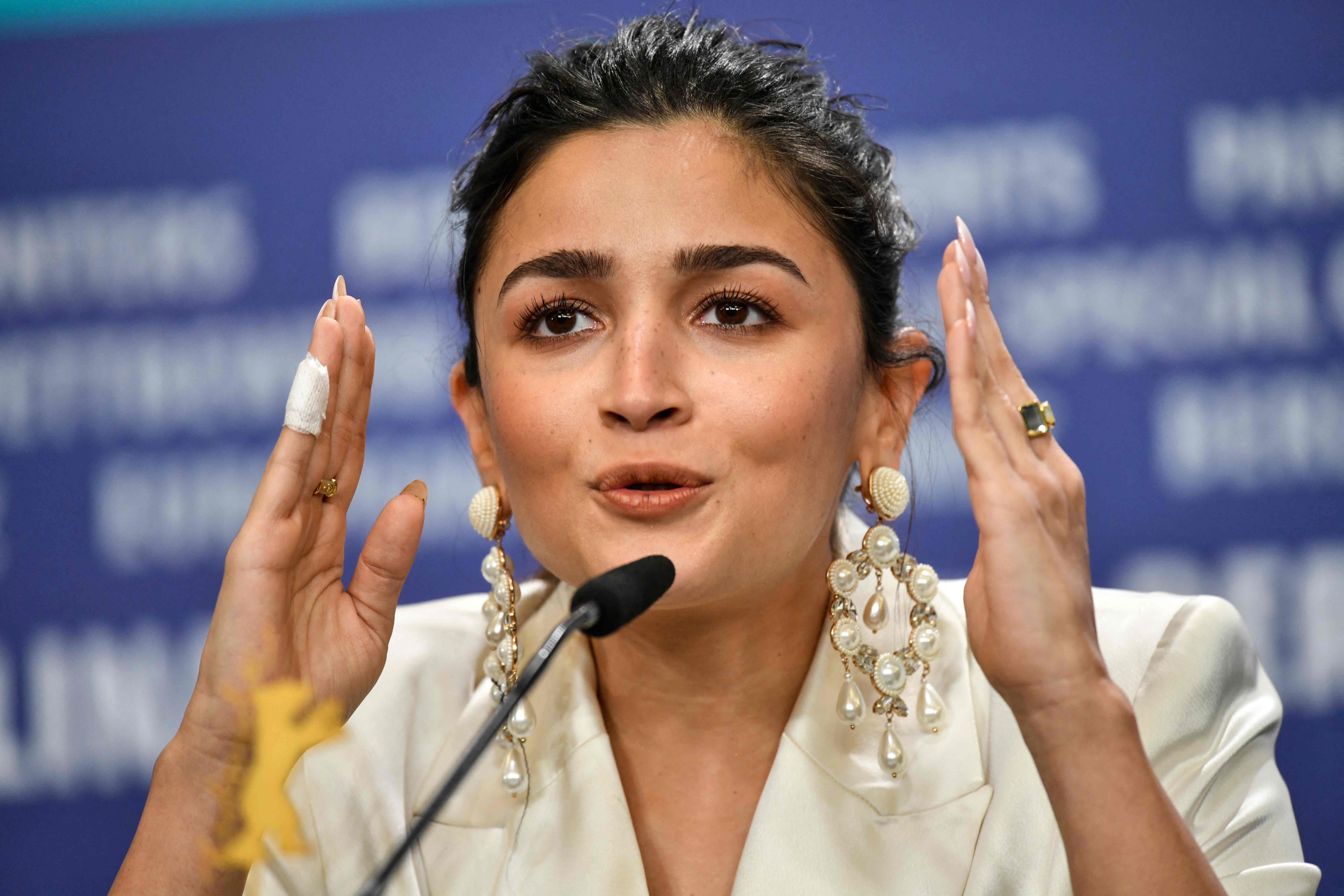 Bollywood actress Alia Bhatt attends a press conference for the film "Gangubai Kathiawadi" at the 72nd Berlinale Film Festival.