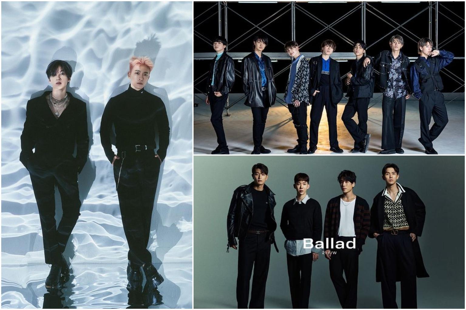 (Clockwise from left) Super Junior - D&E members Eunhyuk and Donghae, Befirst members Ryuhei, Junon, Manato, Sota, Shunto, Leo and Ryoki, and 2AM members Jinwoon, Jo Kwon, Changmin and Seulong.
