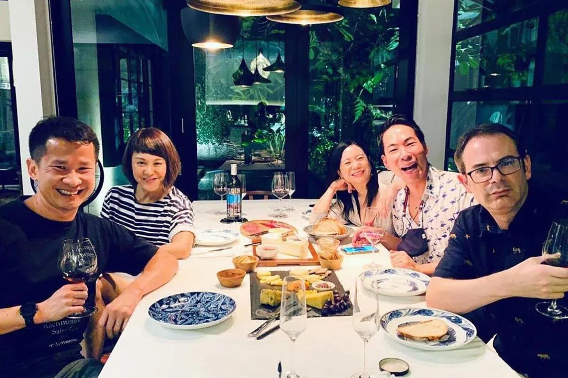 Chua Enlai (second from right) at a “cheese fest” with friends at actress Janice Koh’s (second from left) house in 2022.