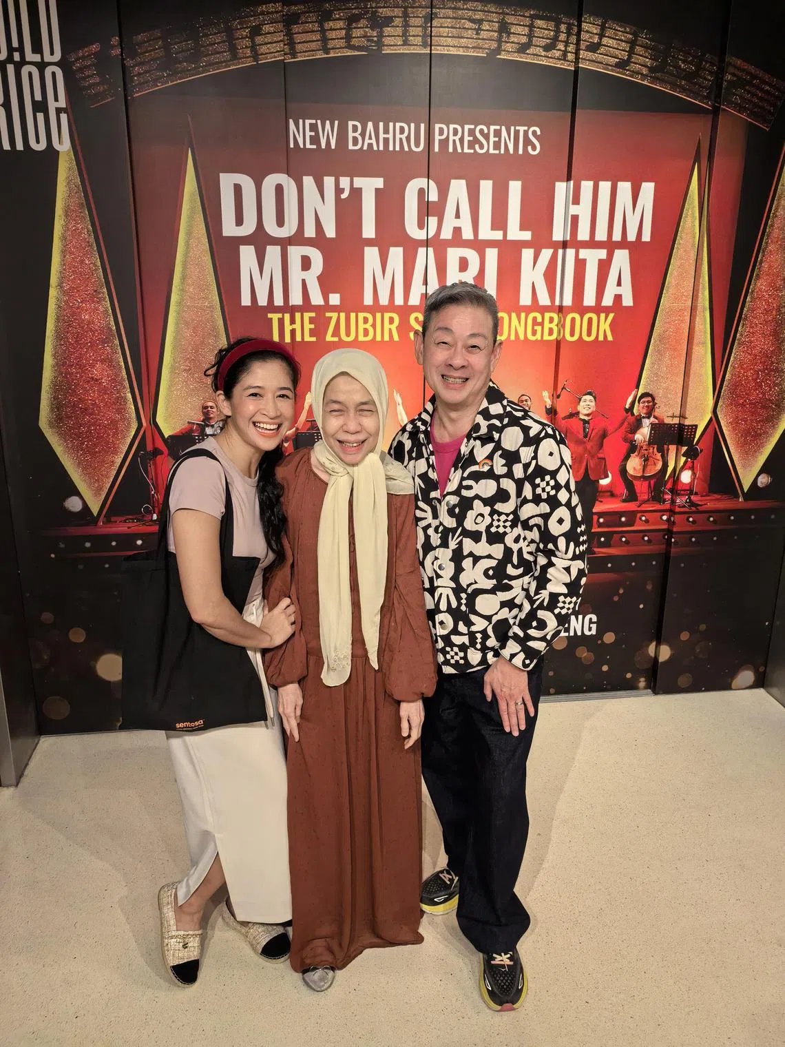 (From left) Actress-host Munah Bagharib and her mother Azeezah Aidid with Ivan Heng, director of the musical Don’t Call Him Mr Mari Kita.