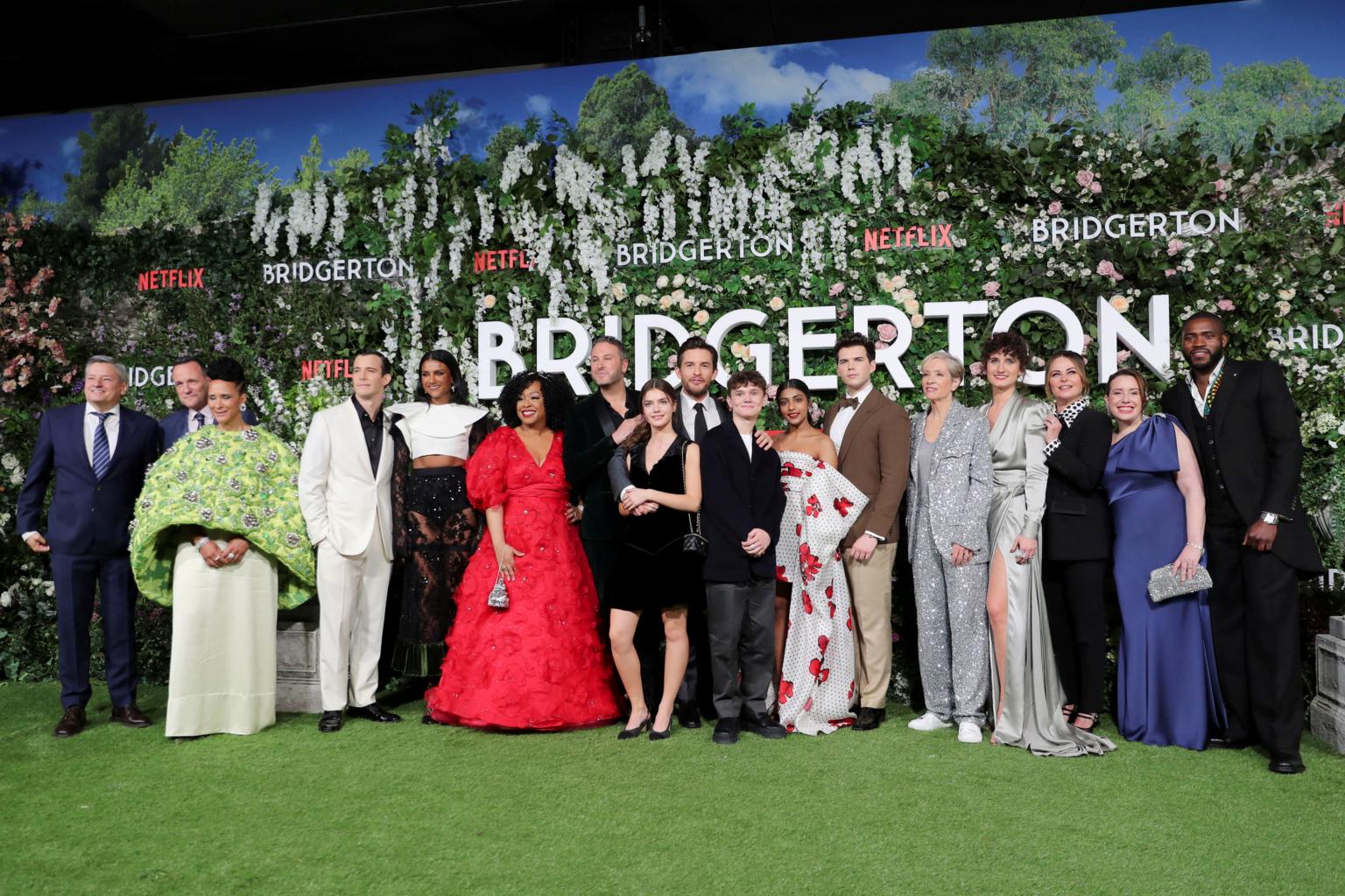 Cast and crew members attend the world premiere for the second season of Bridgerton in London on March 22, 2022.
