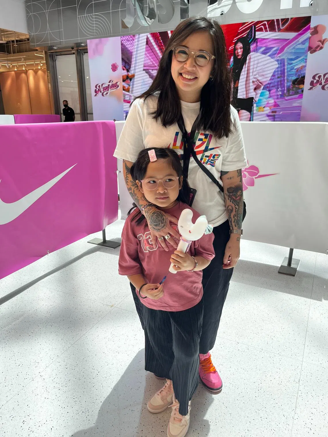 NewJeans fan, five-year-old Belle Nunis, with her mother Jaclyn Tan.