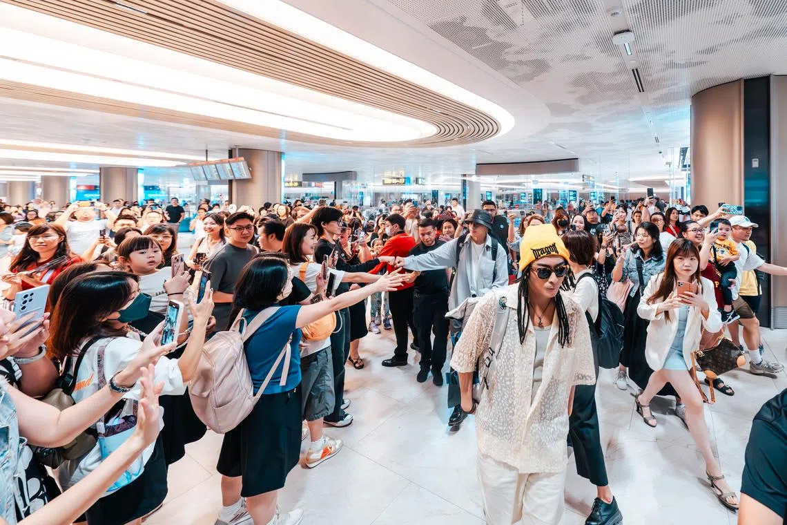 Some 350 fans turned up at Changi Airport on Oct 4 to welcome Energy members, including Kunda (in black hat) and Toro (in yellow beanie).