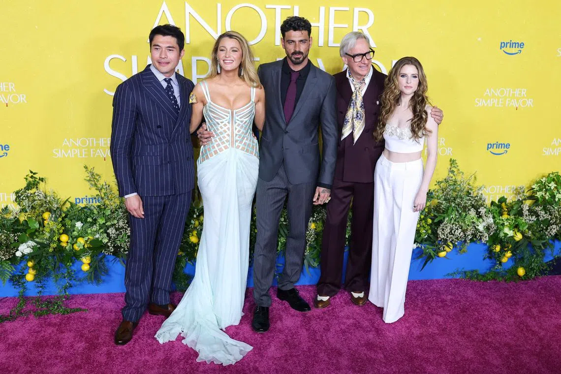 (From left) Malaysian-British actor Henry Golding, US actress Blake Lively, Italian actor Michele Morrone, US director/producer Paul Feig and US actress Anna Kendrick at the New York screening of Another Simple Favor, on April 27.