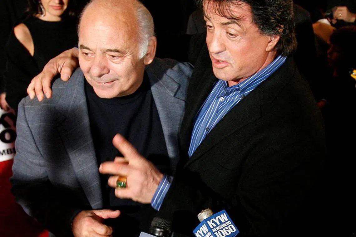 Burt Young (left) with co-star Sylvester Stallone before the premiere of Rocky Balboa in Philadelphia, Pennsylvania, on Dec 18, 2006.