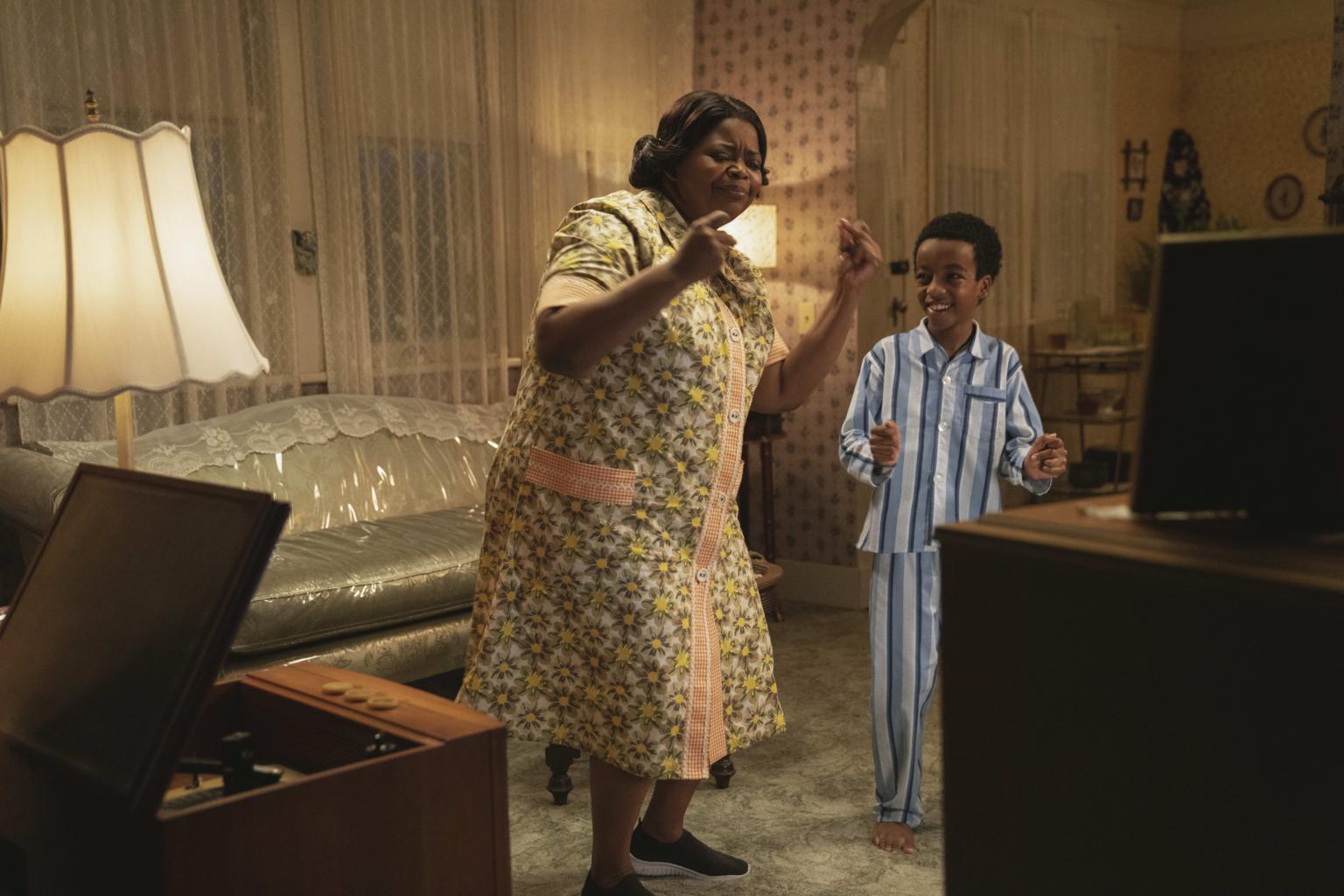 Stills from the film The Witches starring Octavia Spencer (left), Anne Hathaway, Stanley Tucci and Jahzir Bruno (right).