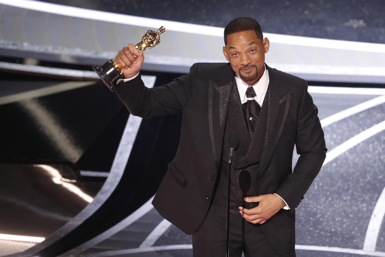 Will Smith accepts the Oscar for Best Actor in King Richard at the 94th Academy Awards, on March 27, 2022.