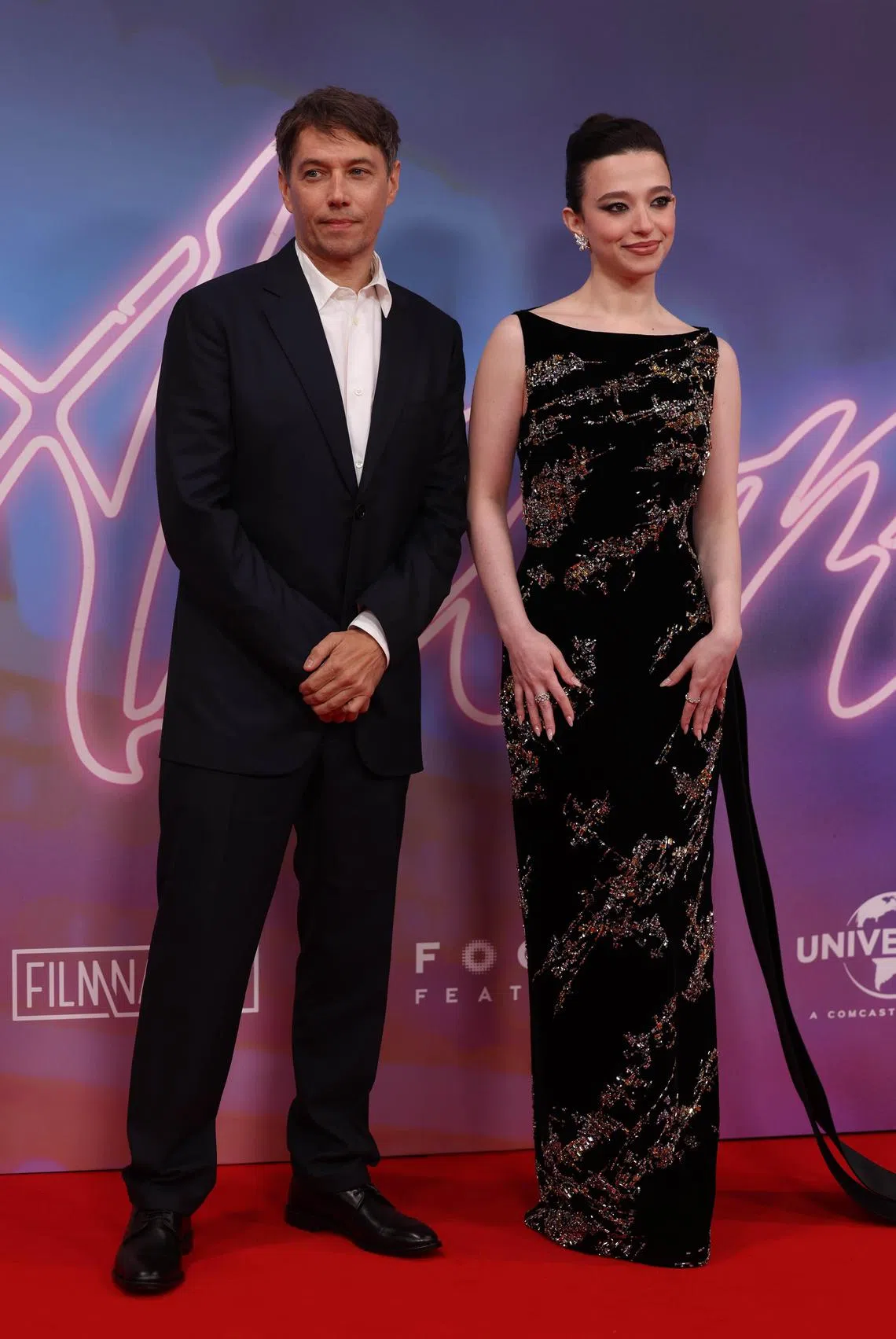 American director Sean Baker and actress Mikey Madison on the red carpet for Anora’s gala screening at the BFI London Film Festival on Oct 11.