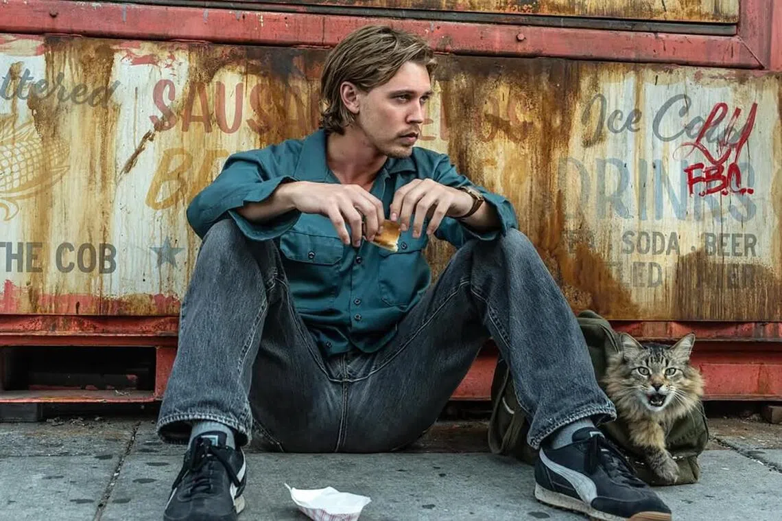 Caught Stealing stars Austin Butler and Tonic (right) the Siberian Forest Cat.