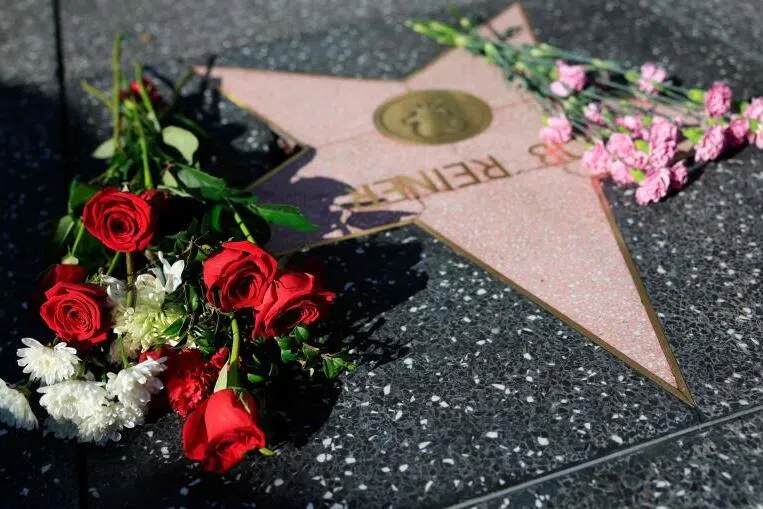 Flowers rest on director Rob Reiner‘s star on the Hollywood Walk of Fame on Dec 15 in Los Angeles, California.