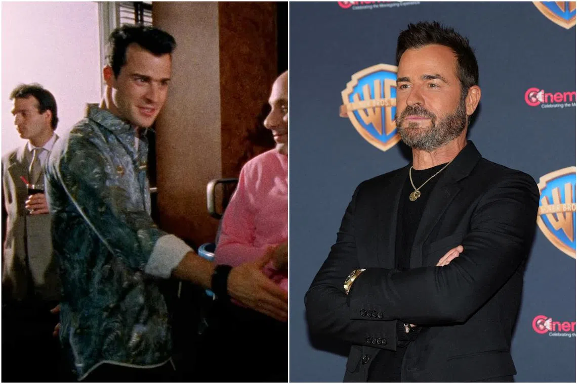 Justin Theroux played an up-and-coming writer named Jared in a Season 1 episode of Sex And The City (left). In 2024 he is seen promoting the film Beetlejuice Beetlejuice during CinemaCon in Las Vegas on April 9.