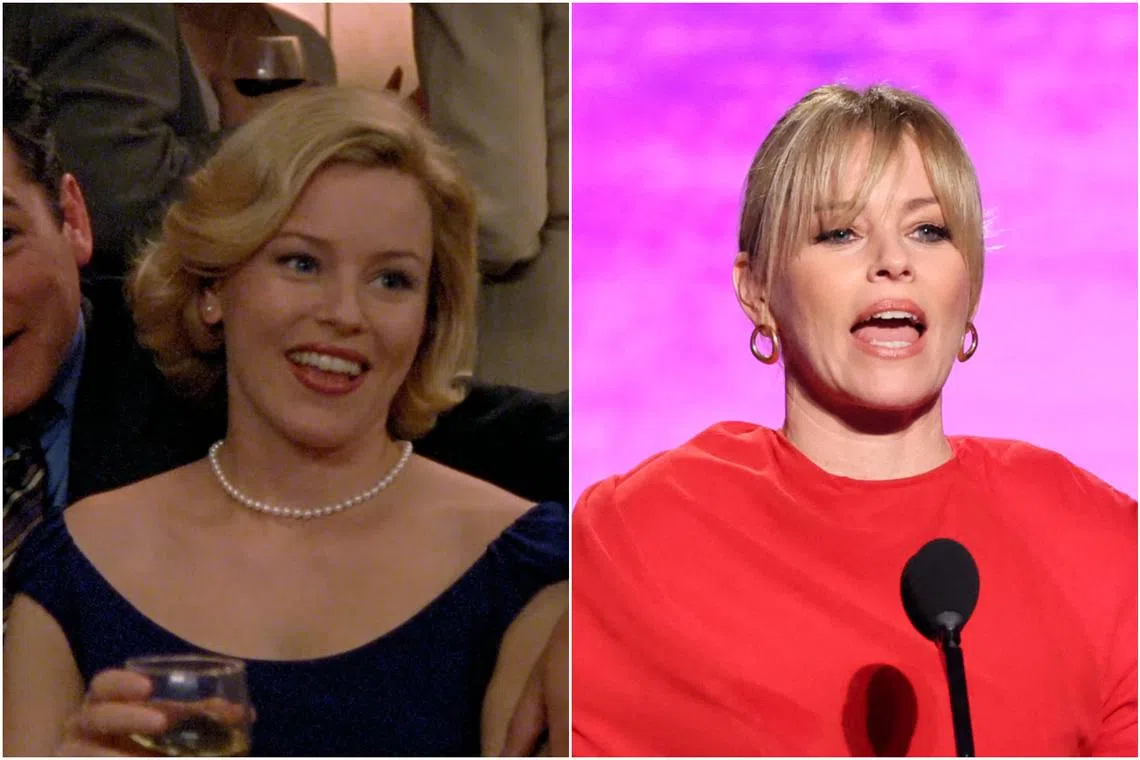 Actress-producer Elizabeth Banks has a barely minute-long appearance in the third season of Sex And The City (left). In 2024 she is seen speaking onstage during the 39th Film Independent Spirit Awards in Santa Monica, California, on Feb 25.