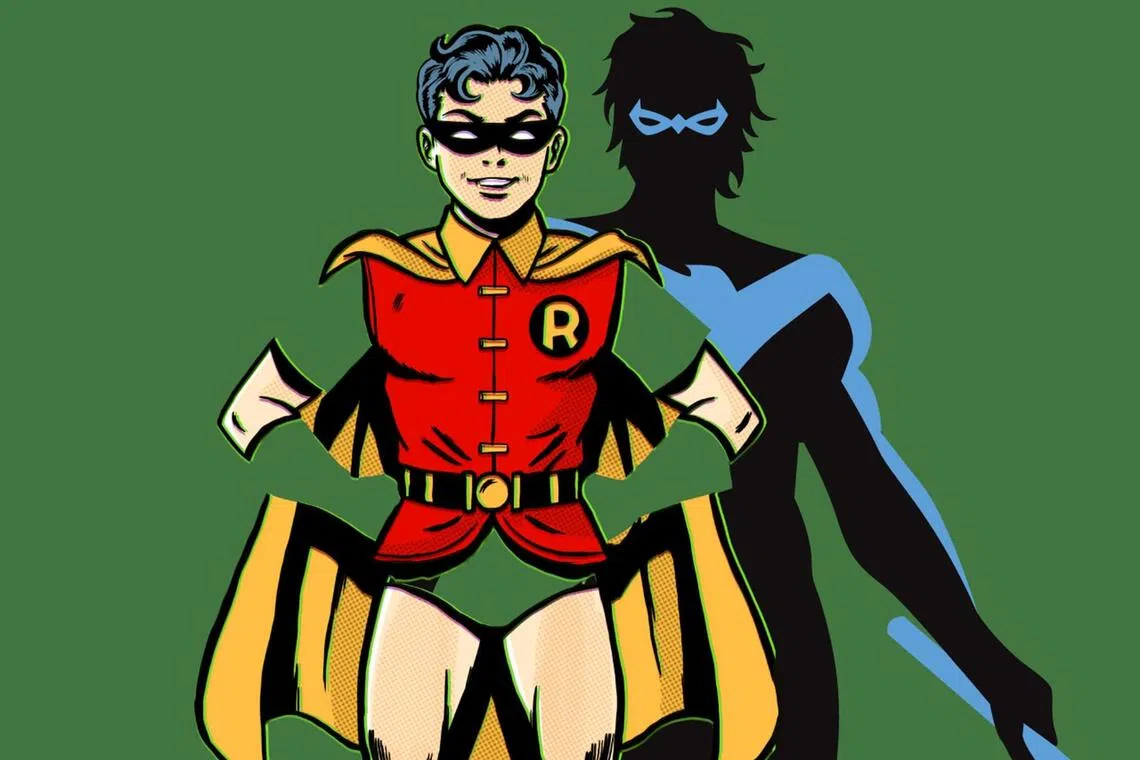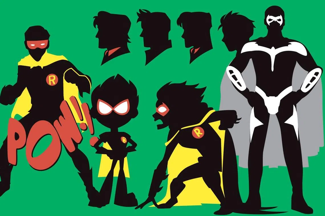 Robin’s bright costume was inspired by Grayson’s acrobat attire. It also helps him provide a literal and metaphorical counterpoint to Batman’s “dark knight”.