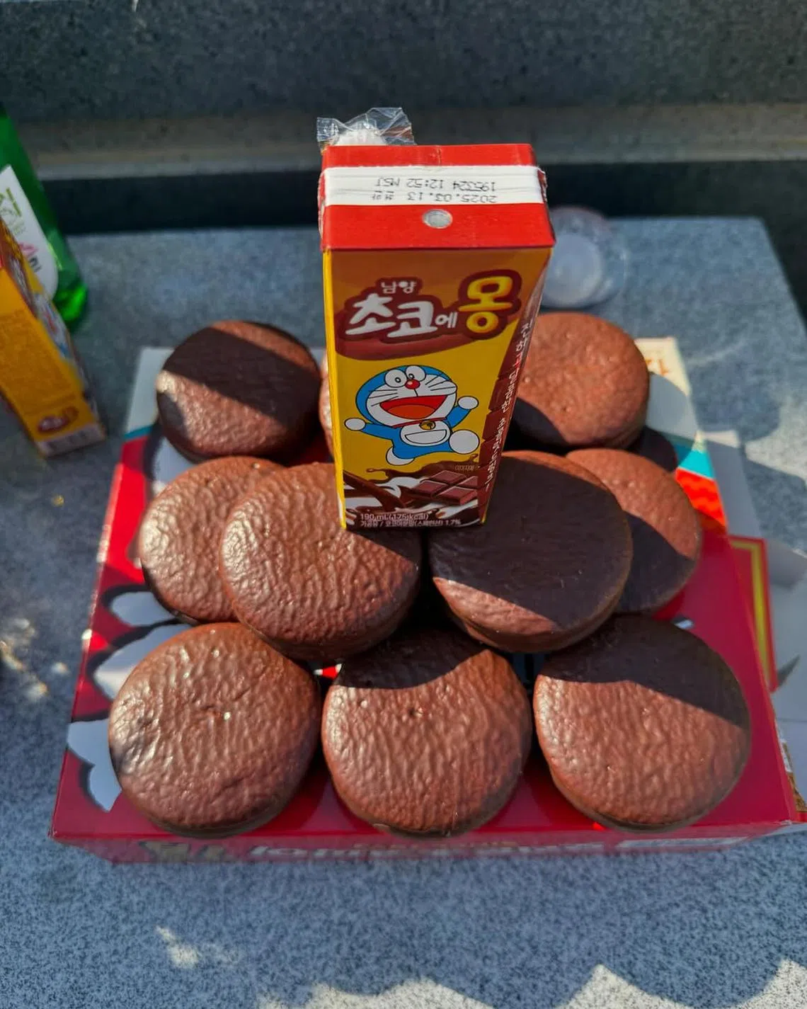 K-pop boy band Astro member and actor Cha Eun-woo posted a photo of a "birthday cake" made of South Korean snack choco pies and chocolate milk, seemingly at late bandmate Moonbin's grave site.
