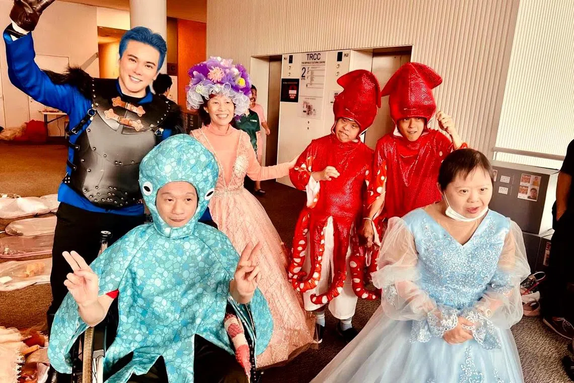 Singaporean actor Nick Shen (left, in blue) is among the cast of Merlion The Musical, which also features individuals with special needs from charity organisation Christian Outreach to the Handicapped.