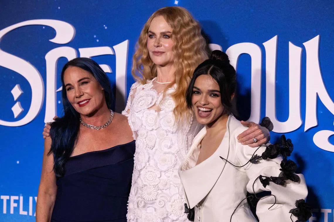 (From left) Film director Vicky Jenson with actresses Nicole Kidman and Rachel Zegler at the New York premiere of Spellbound on Nov 11.