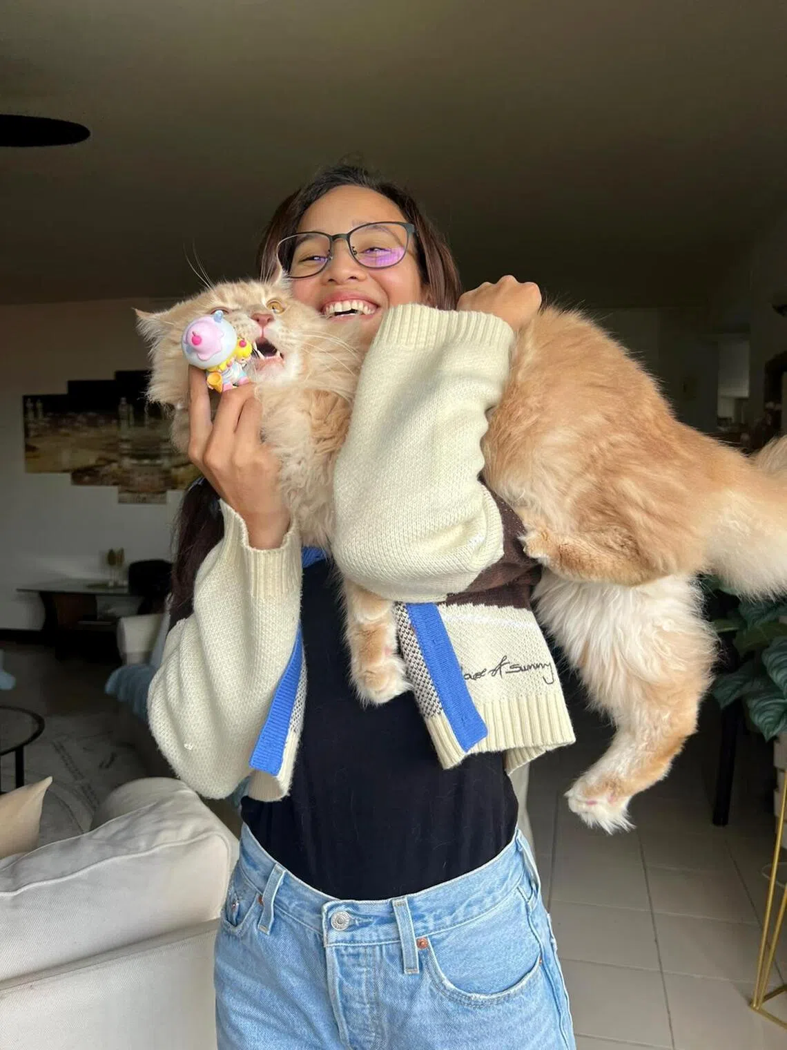 Singer Iman Fandi and Rome, her four-year-old Maine Coon.