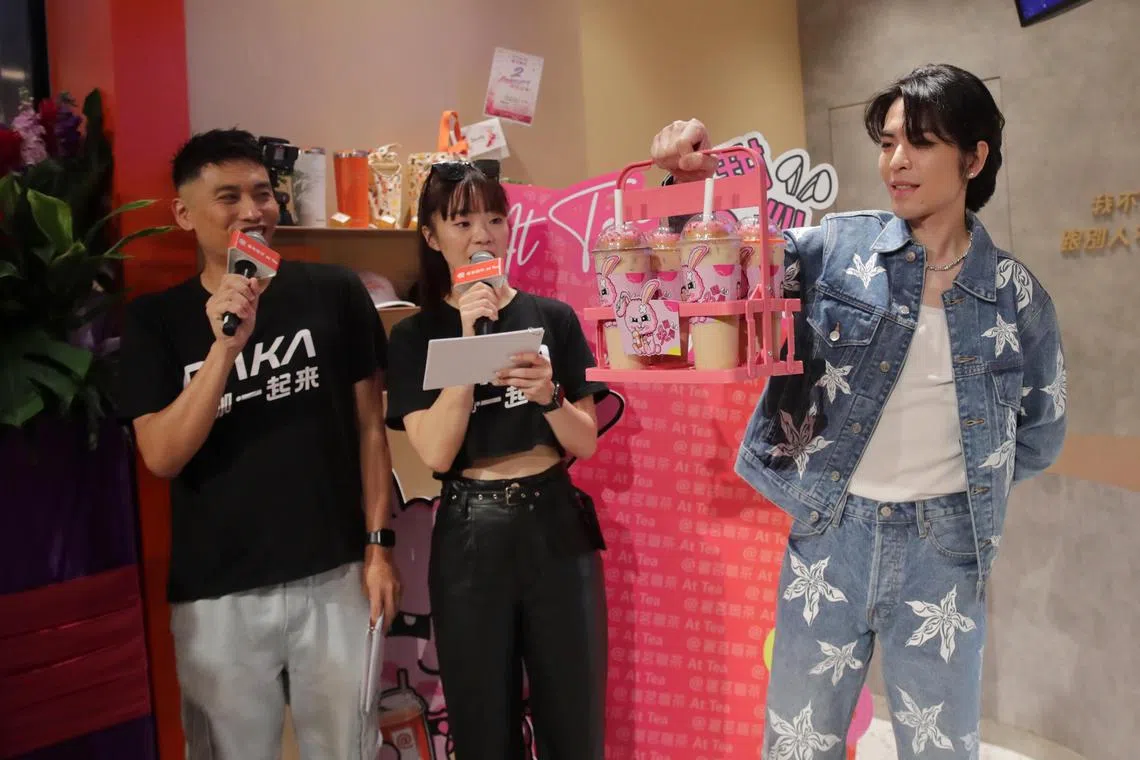 On Monday, he made an appearance in At Tea Singapore’s flagship store at 313@Somerset to celebrate its second anniversary, warmly greeting his fans in attendance. He founded the bubble tea chain in 2020, starting with an outlet in Taipei, after which the brand entered the Singapore market in 2021.