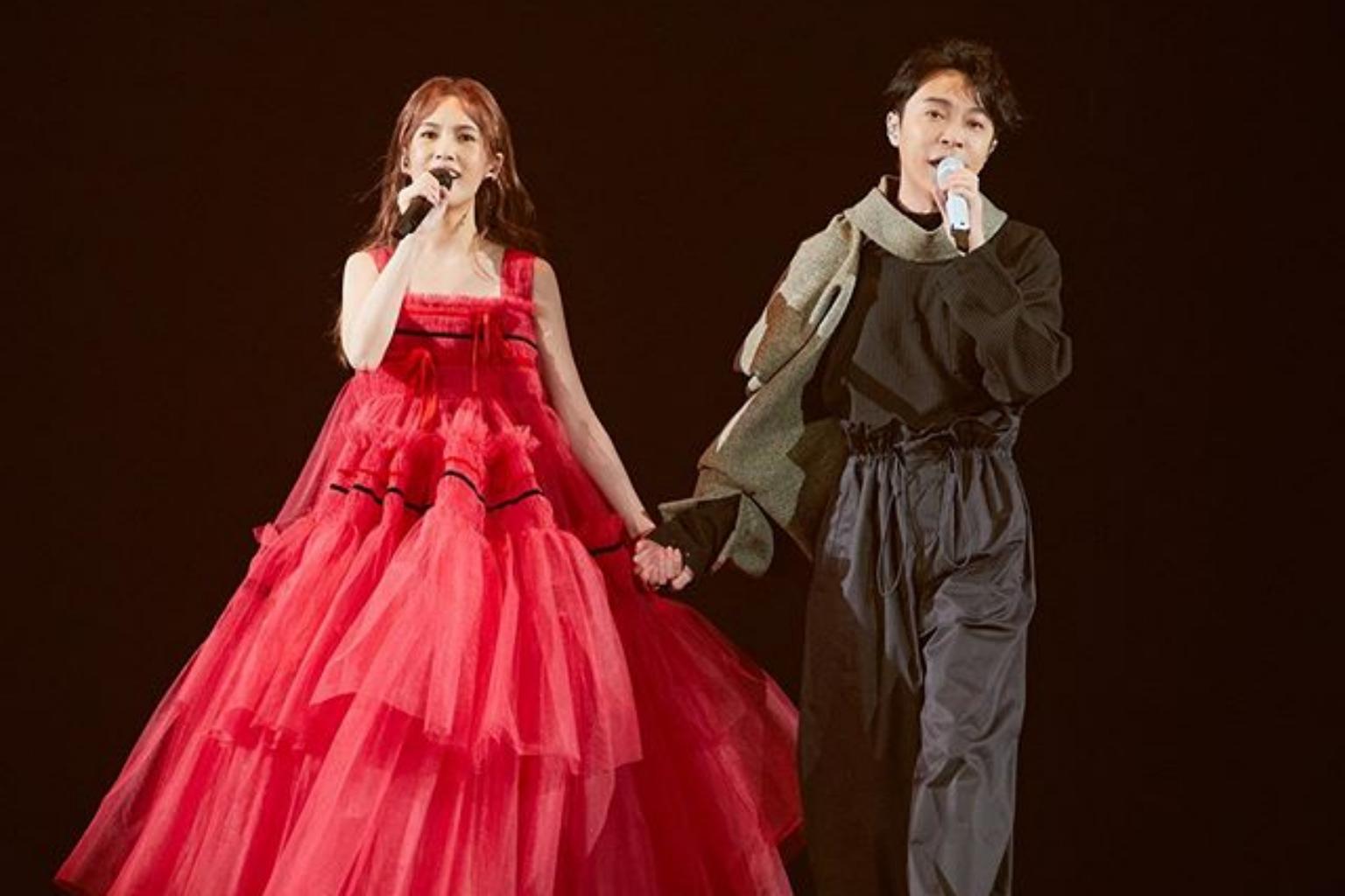 Rainie Yang (left) and singer-songwriter Wu Ching-feng on the first night of Yang's concert at Taipei Arena on Nov 6, 2020.