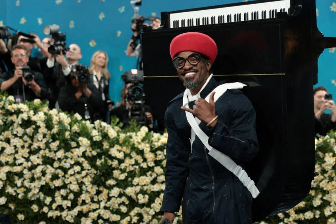 Musician Andre 3000 with a replica of a piano at the Met Gala.