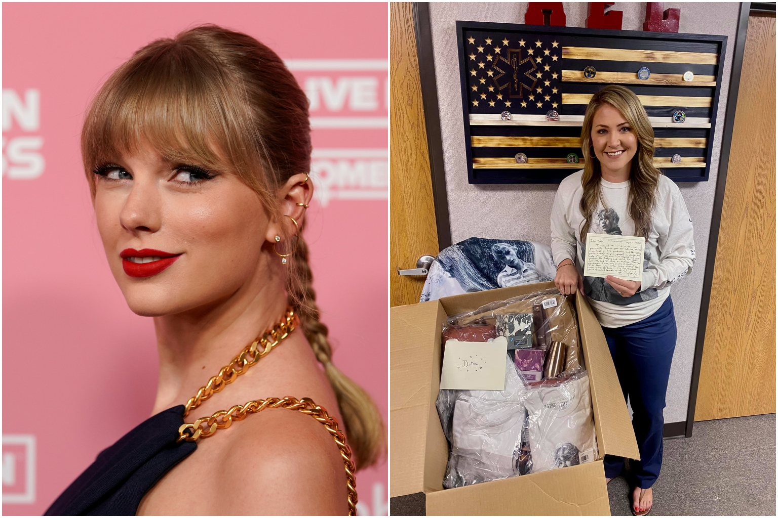 Nurse Britta Thomason, a self-proclaimed fan of Taylor Swift, received a care package from the singer-songwriter on Wednesday (April 14).