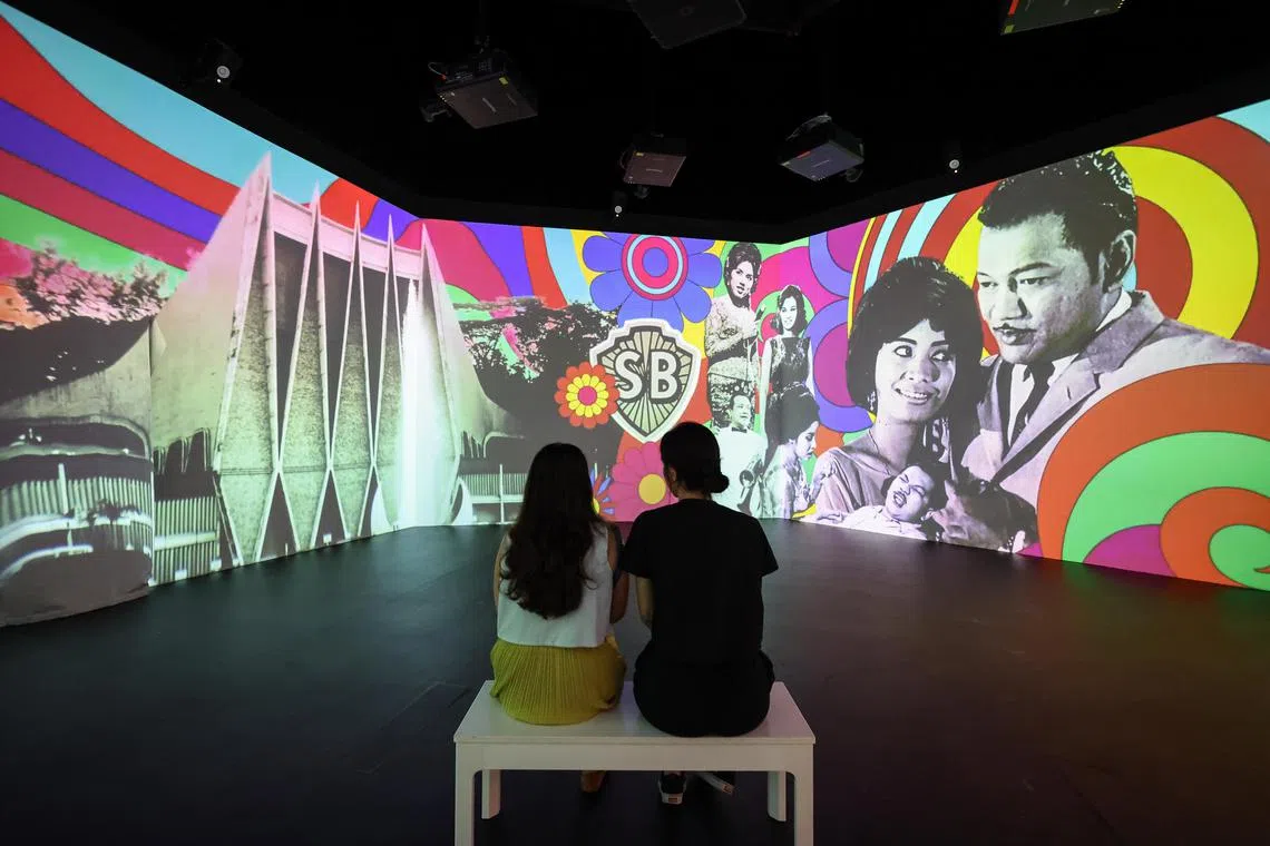 One of the final exhibits that visitors encounter before they leave is an immersive 360-degree room, SingaStories, which plays a video capturing the evolution and dynamism of local pop culture through the decades. Its visuals range from iconic landmarks like the National Theatre to contemporary AI-generated art.