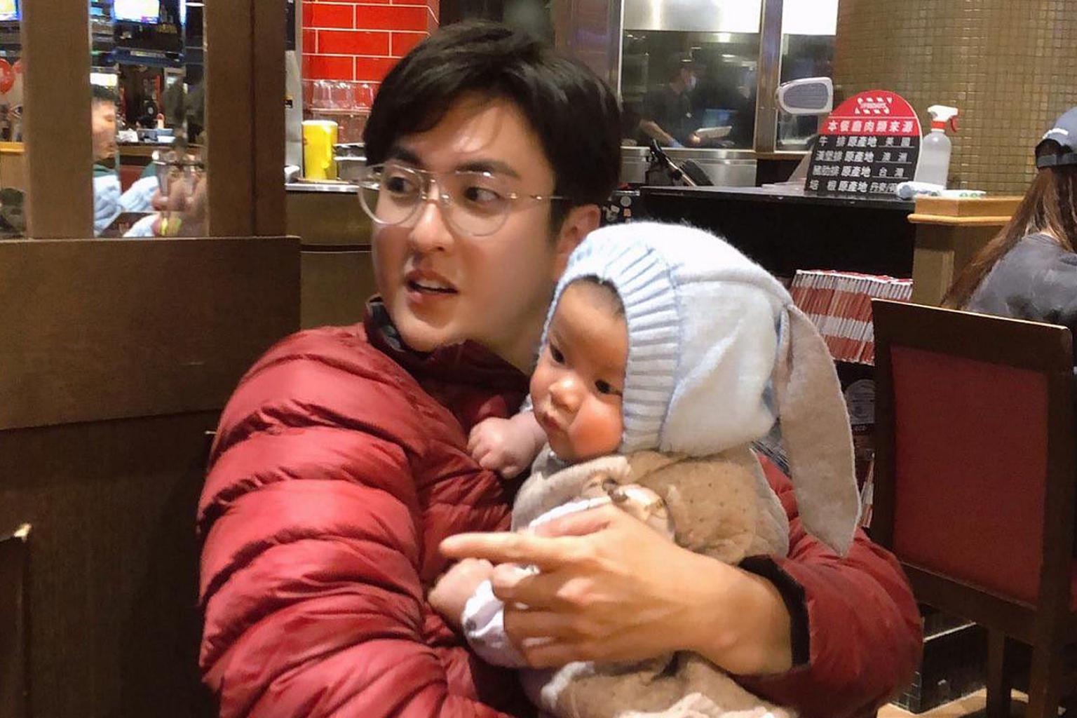 Singapore singer Huang Jinglun with his baby in a photo posted on social media on March 3, 2021.