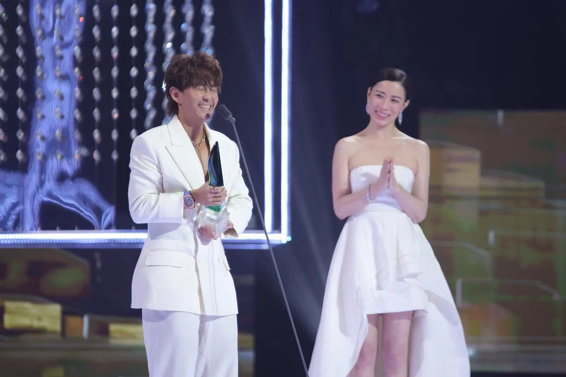 Fighting back the urge to cry on stage, Chan, 42, thanked his actress-wife Jesseca Liu for taking care of him during the filming of Best Drama Serial winner All That Glitters (2023).