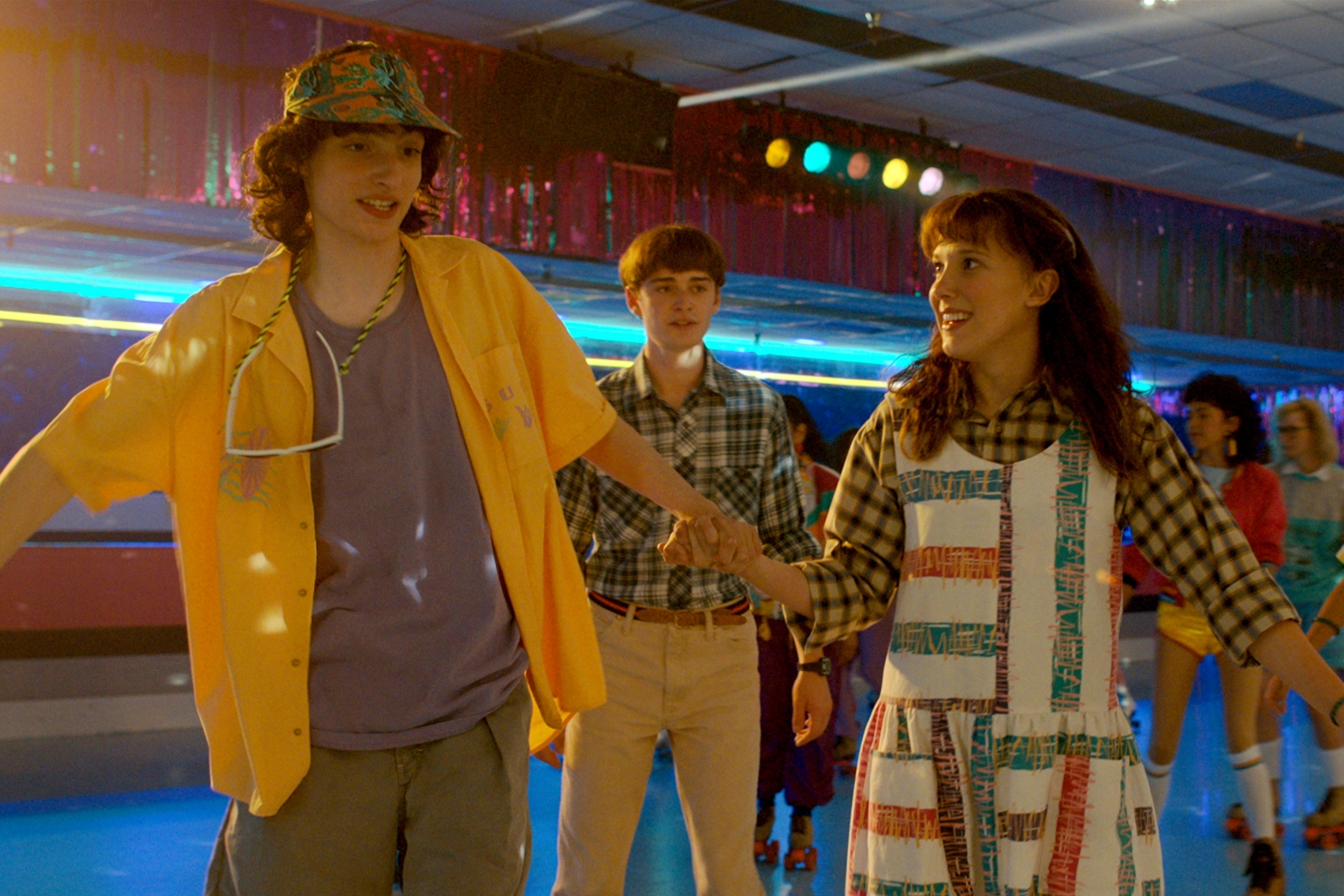 A still from Stranger Things featuring Finn Wolfhard and Millie Bobby Brown.