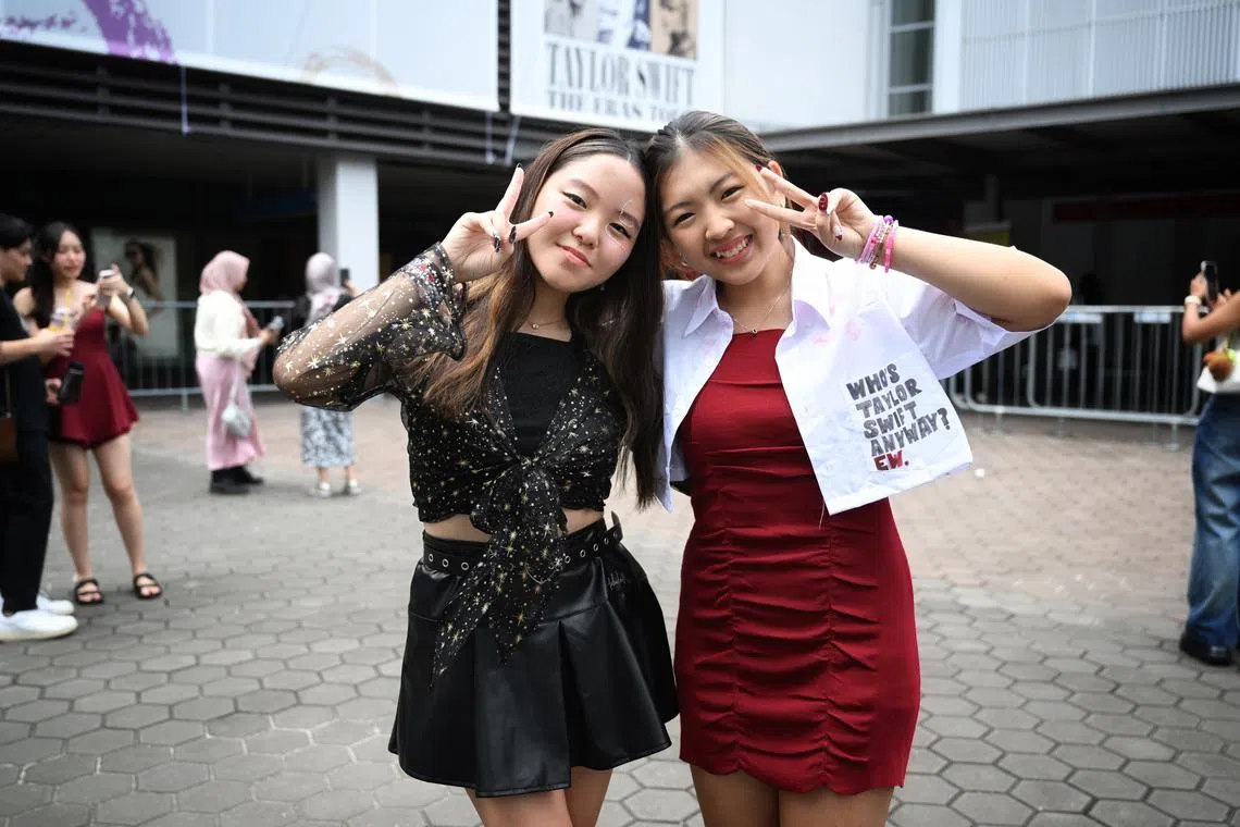Chrystal Tiu (left), 17, was dressed in an outfit inspired by Swift’s Reputation (2017) album, while her friend Phoebe Leong (right), 16, wore an outfit inspired by Swift’s Red (2012) album.