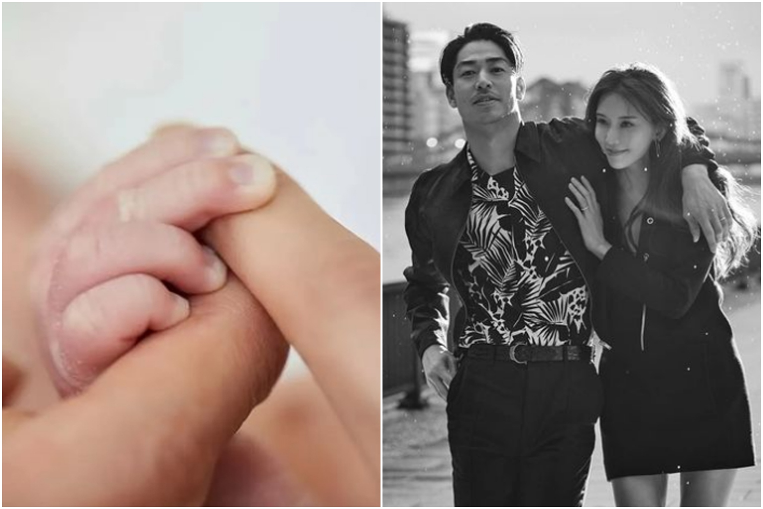 Taiwanese model-actress Chiling Lin (right) and husband Japanese actor Akira shared the photo of a small hand holding on to a big finger on social media on Jan 30, 2022.