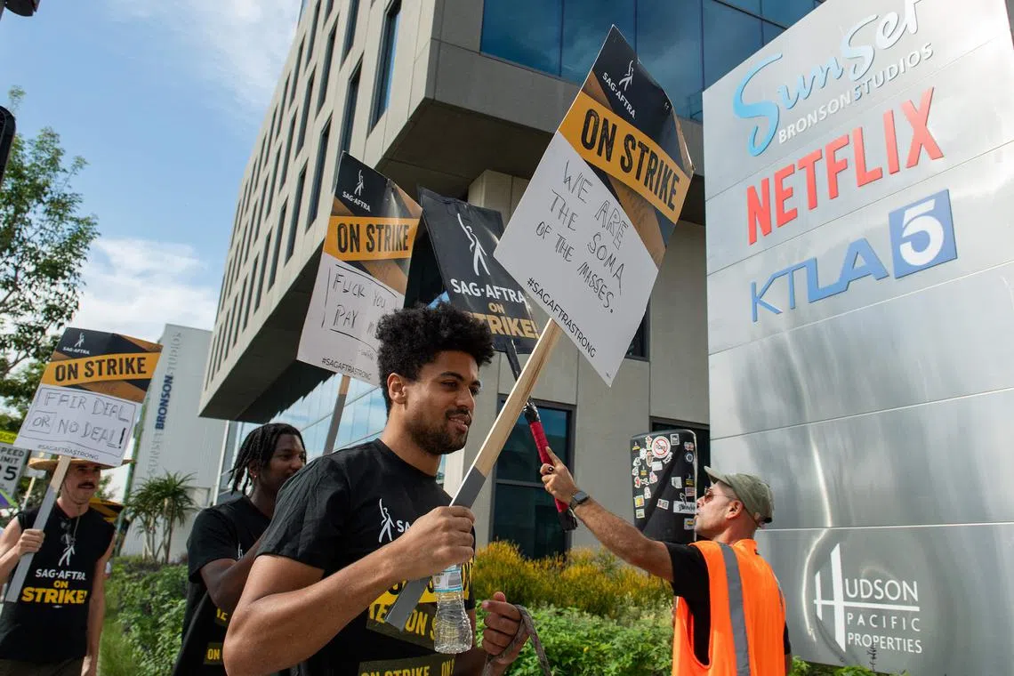 Members of the Screen Actors Guild picket outside Netflix, in Los Angeles, California.