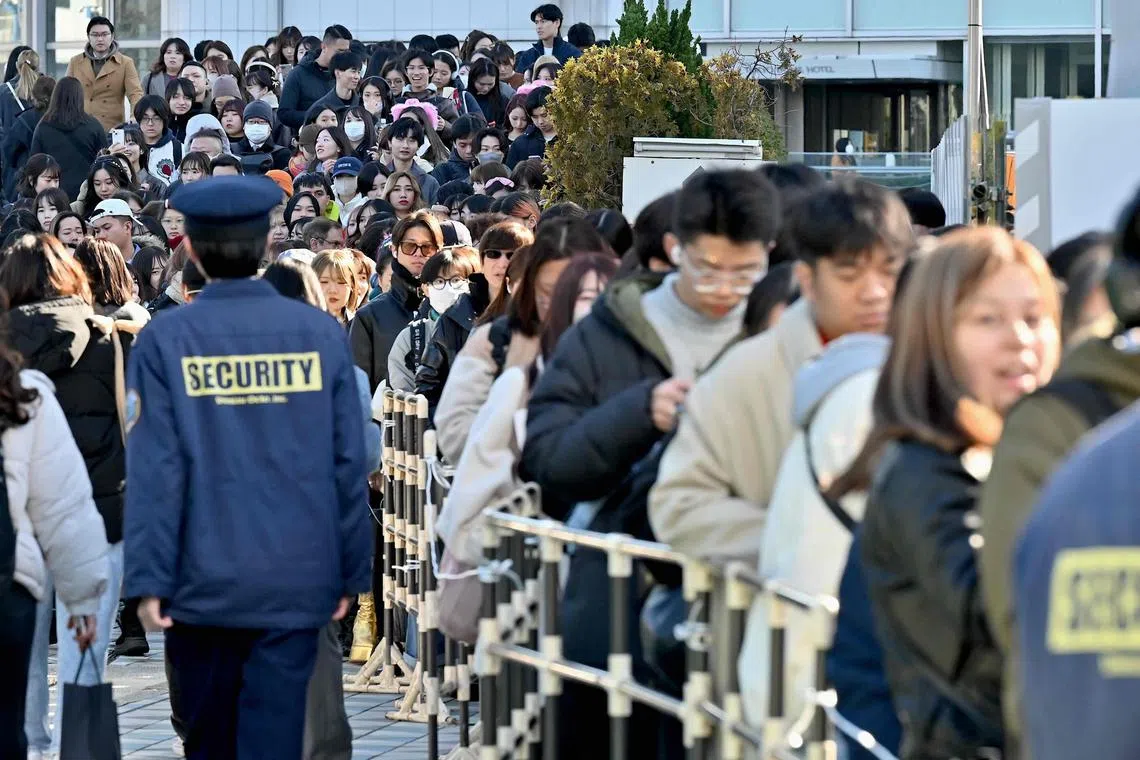 Thousands of Taylor Swift fans queueing to buy merchandise in front of the Tokyo Dome.