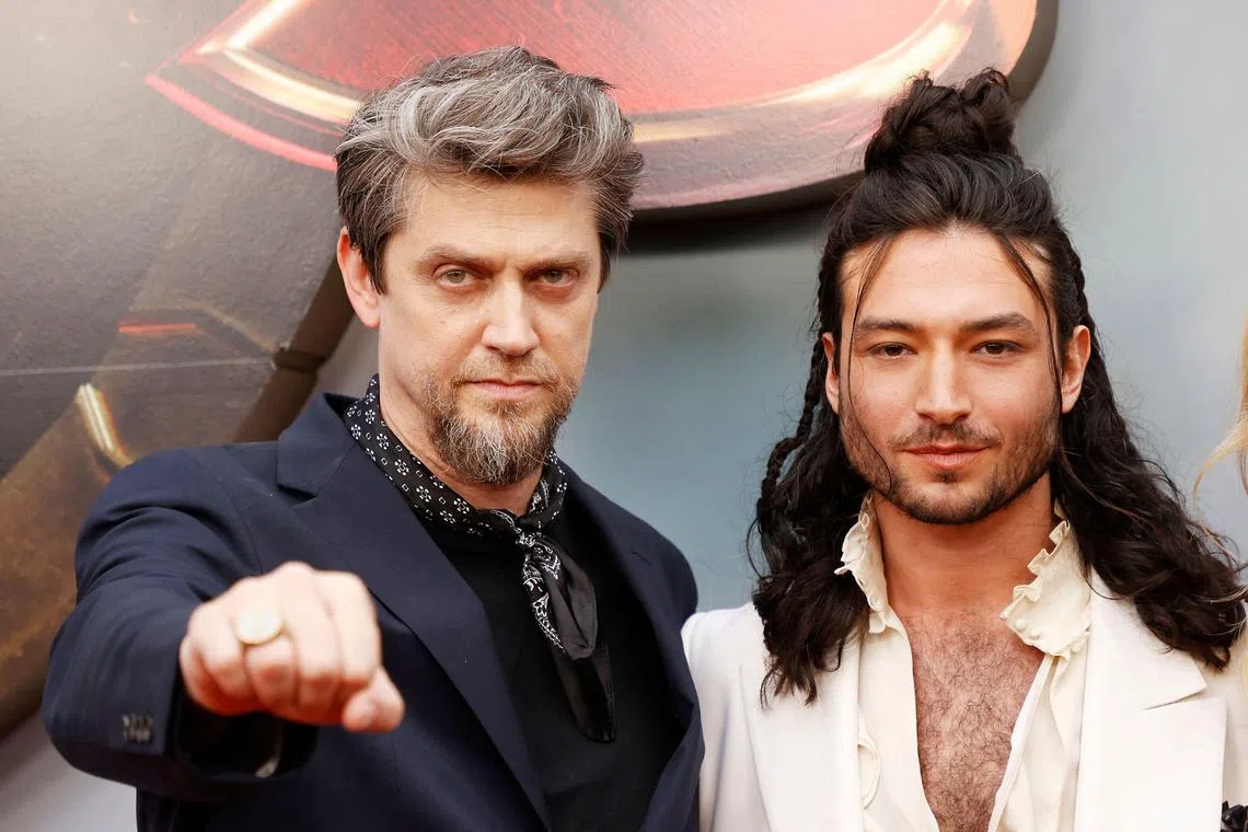 Argentine director Andy Muschietti (left) and American actor Ezra Miller at the world premiere of The Flash in Los Angeles, California, on Monday.