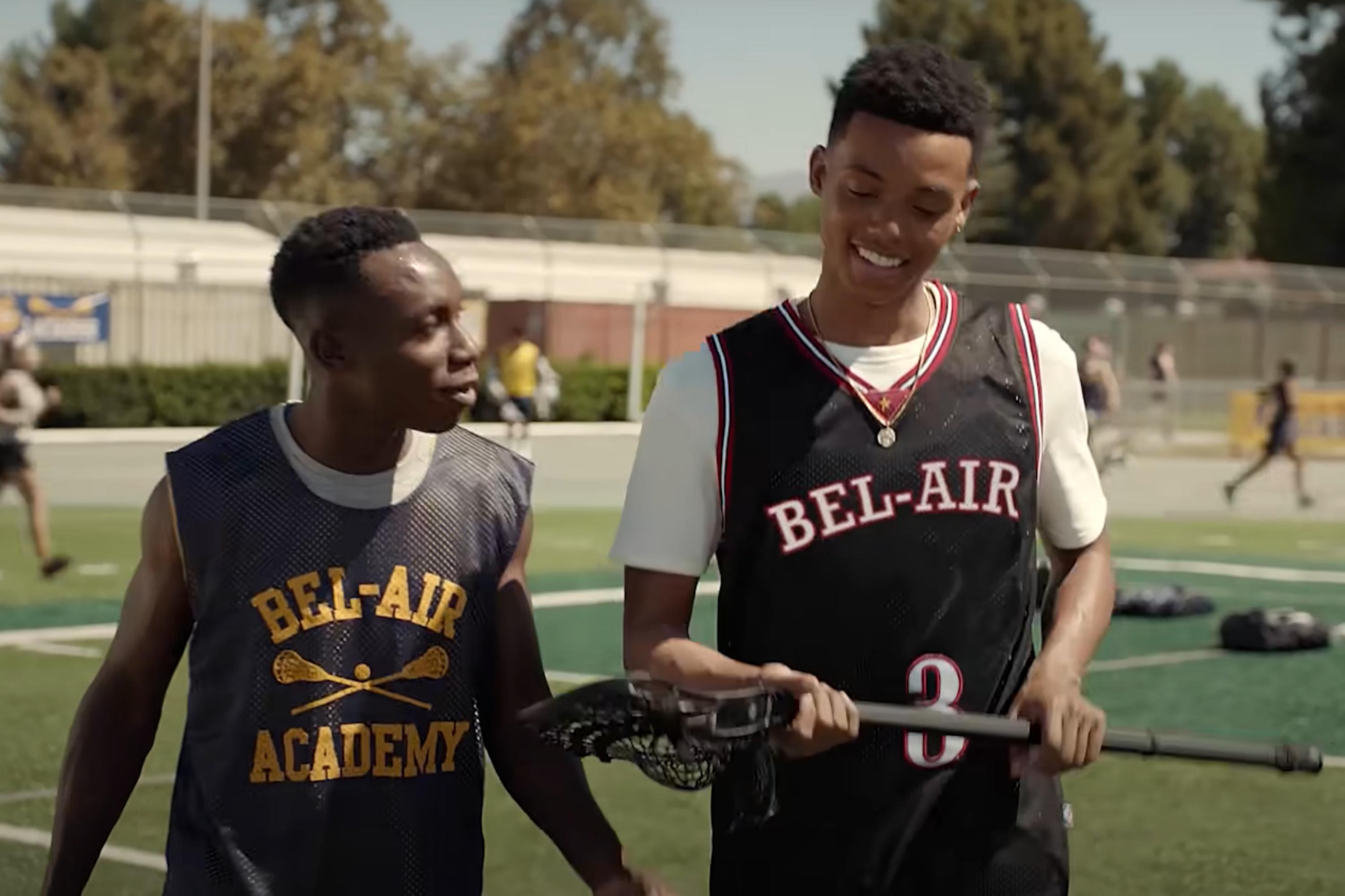 Still from The Fresh Prince of Bel-Air trailer starring Olly Sholotan (left) as Carlton and newcomer Jabari Banks as Will.